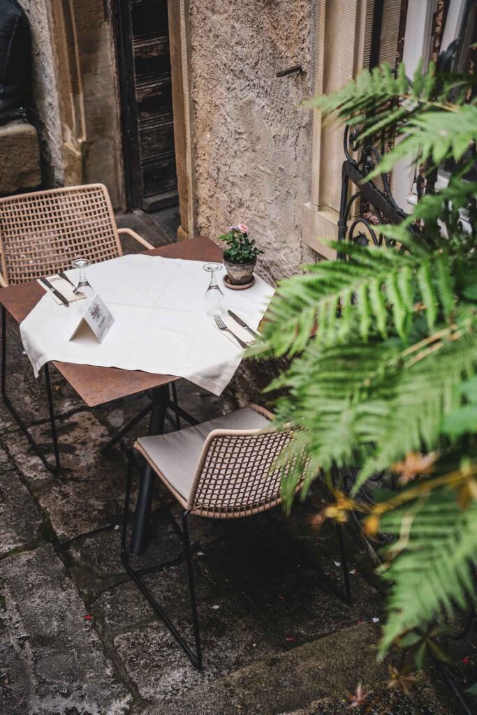 Ein besonderes Highlight des Restaurants bildet nicht nur die eindrucksvolle Außenfassade, sondern auch der historische Innenhof des ehemaligen Bürgerhofs, der einen besonderen Rahmen für ein gemütliches Essen zu zweit bietet, sodass wir uns hier von Anfang an richtig wohl gefühlt haben.