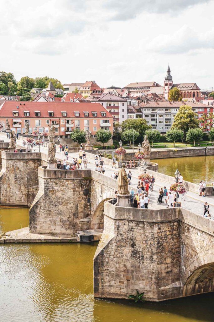 Die Alte Mainbrücke, die links und rechts von den charakteristischen Heiligenfiguren gesäumt ist, wird aber vor allem im Sommer zum Pilgerort für Weinliebhaber, Genießer und Sonnenanbeter. Kurz: Hier ist einfach immer was los!