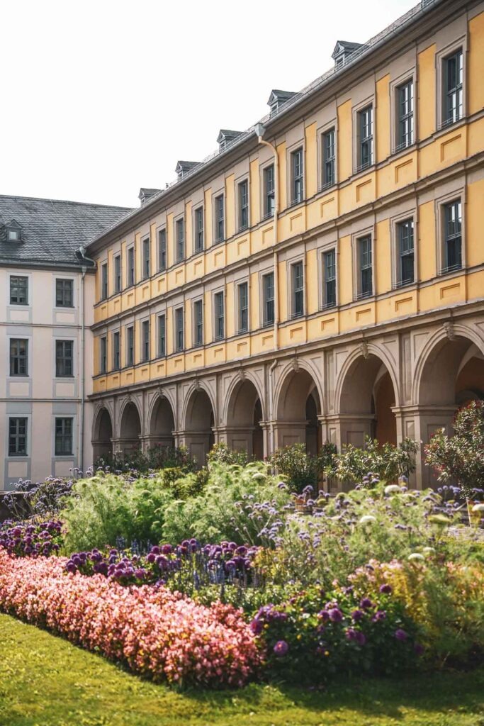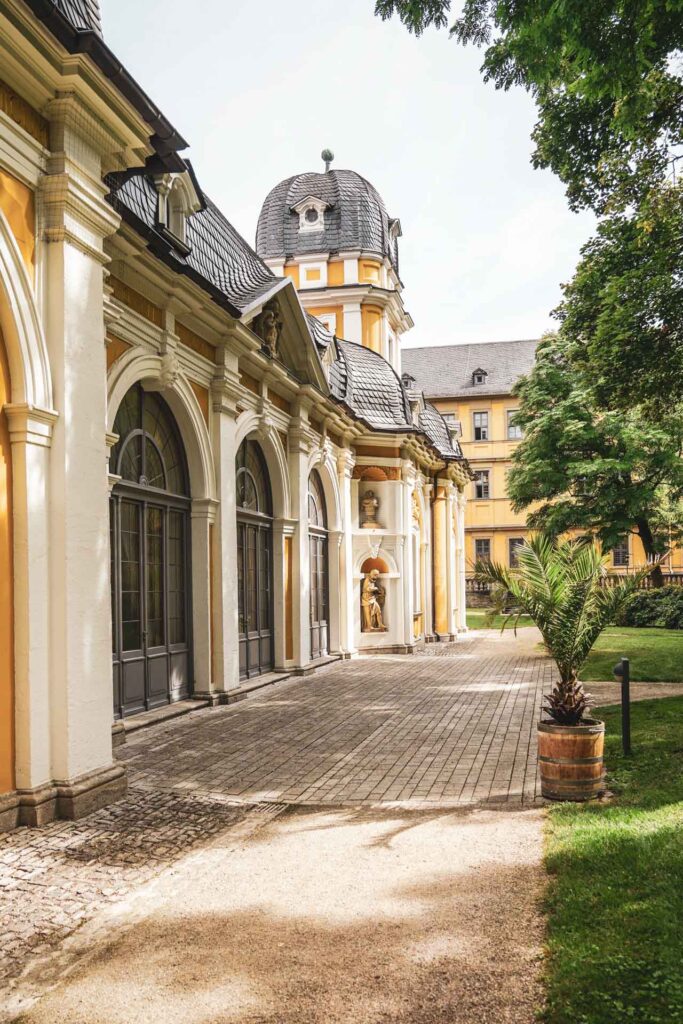 Von hier aus geht es in den Innenhof des Fürstenbaus, den wir übrigens auch als Fotolocation empfehlen können! Gerade am späten Nachmittag ist der herrschaftliche Bau in sanftes Licht getaucht und eine eindrucksvolle Kulisse für schöne Erinnerungsfotos.